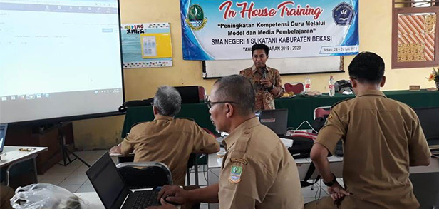 Fasilitator Climber Indonesia berbagi pengetahuan penggunaan media pembelajaran berbasis teknologi informasi kepada Bapak & Ibu Guru SMAN 1 Tambun Utara.